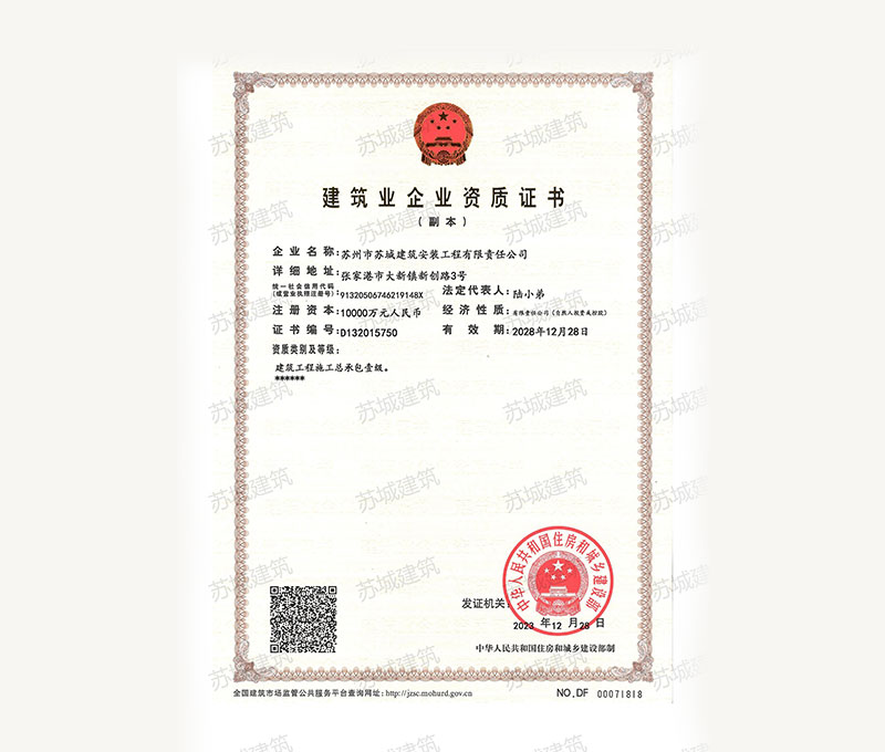 蘇州市蘇城建筑安裝工程有限責(zé)任公司,擁有主項建筑工程施工總承包一級資質(zhì),增項市政公用工程施工總承包二級資質(zhì)和建筑裝修